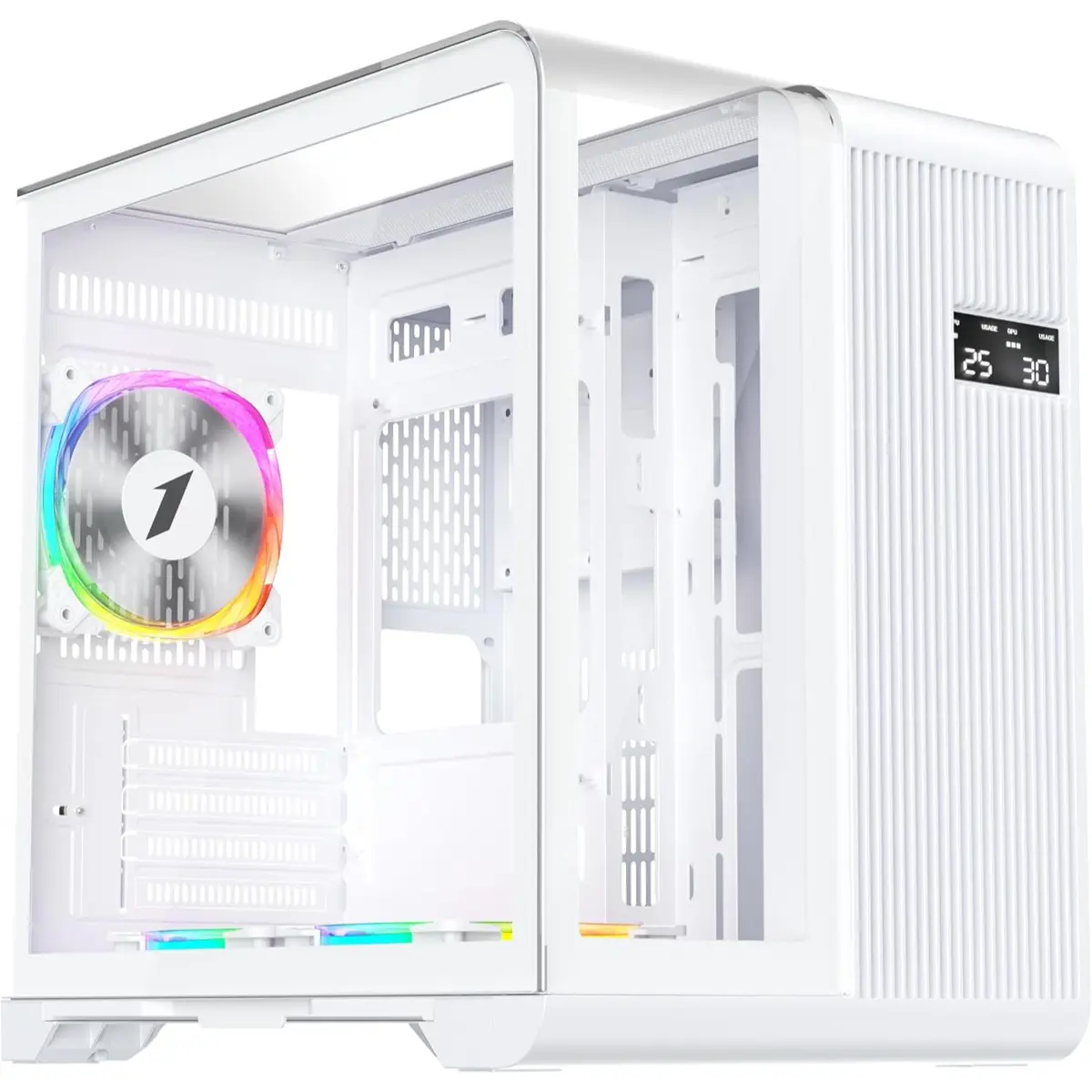 1st Player RT5 ARGB Micro-ATX White PC Gaming Case - Dual Chamber, LED Screen and Curved Panoramic Tempered Glass (3 x ARGB Fans Pre-installed)