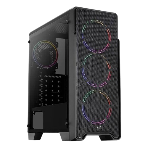 High-performance mid tower case with a stylish mesh front panel design for increased air flow and ventilation. Comes equipped with the Saturn 12 FRGB fan with Fixed RGB LED Lighting to create a static lighting effect. Full tempered glass side panel to showcase the inside of your rig.