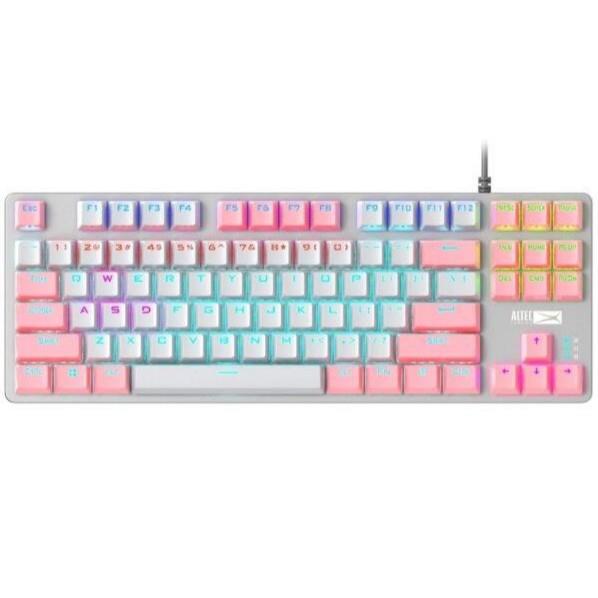 Altec Lansing 8404 RGB Gaming Keyboard with Metal Panel, Compact Mechanical Keyboard For PC, Computer, TKL 87 Keys, Pink/White, Blue Switch