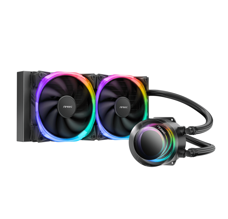 The suspended spiral pump head inspired by the image of a vortex provides outstanding cooling performance and various lighting effects from different angles.