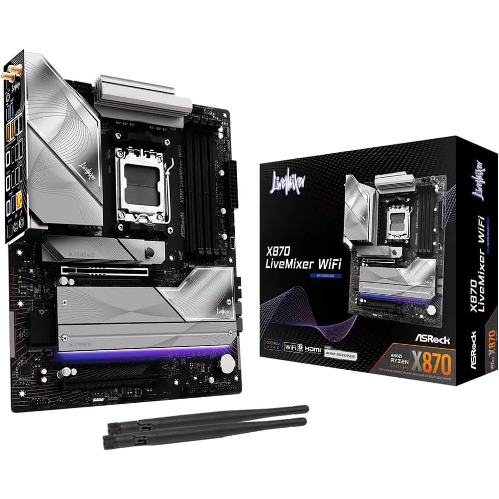 ASRock X870 LiveMixer WiFi AM5 Motherboard - AMD Ryzen 9000/8000/7000, DDR5 8000+ (OC), Dual USB4, PCIe 5.0, WiFi 7, 16+2+1 Power Phase, 5GbE LAN