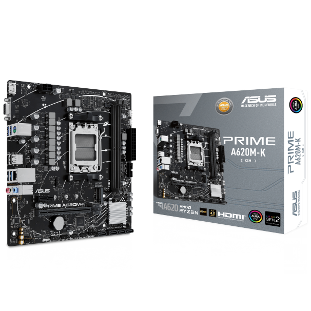 ASUS PRIME series motherboards are expertly engineered to unleash the full potential of AMD Ryzen 7000-series processors. Boasting a robust power design, comprehensive cooling solutions and intelligent tuning options, PRIME A620M-K-CSM provides users and PC DIY builders with a range of performance optimizations via intuitive software and firmware features.