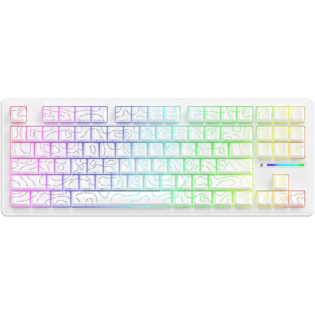 Attack Shark M87 Pro V2 Wireless Mechanical Gaming Keyboard, Hot Swappable Gasket RGB Custom Keyboard, Linear Switch & Side Printed PBT Keycaps, BT5.0/2.4Ghz/Type-C, 5000mAh Battery for Win Mac (White Contour)