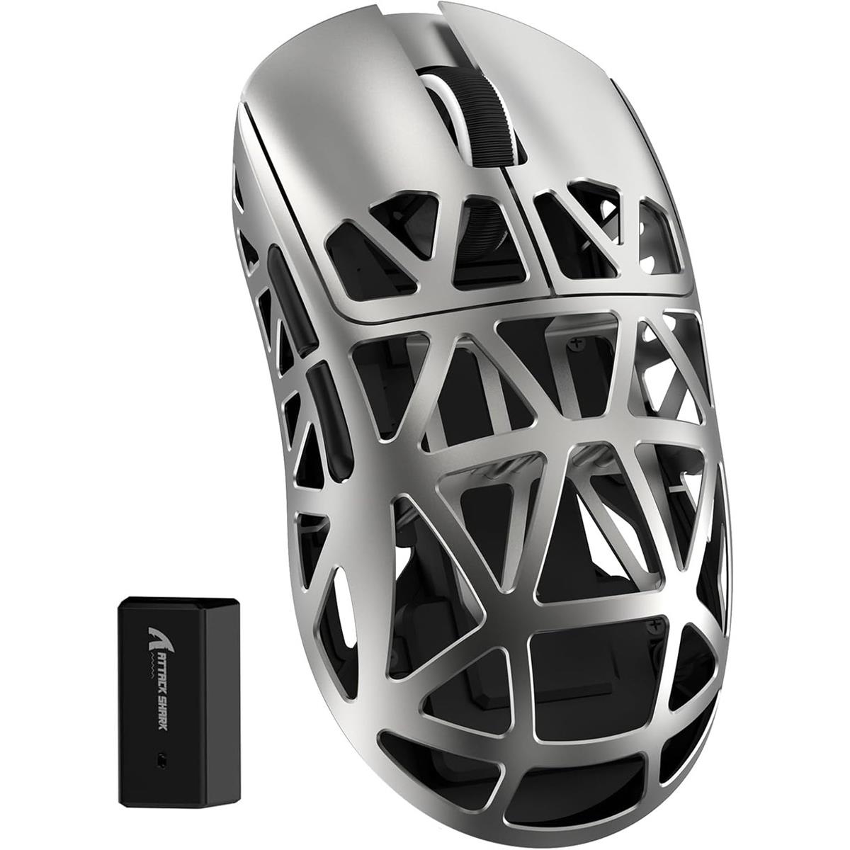 Attack Shark R2 Wireless Gaming Mouse, Superlight Magnesium Alloy, PAW3950 42000 DPI Optical Sensor, 8000Hz Polling Rate, 2.4G/BT/Wired Programmable Mice for Win Mac Gamer (Grey)
