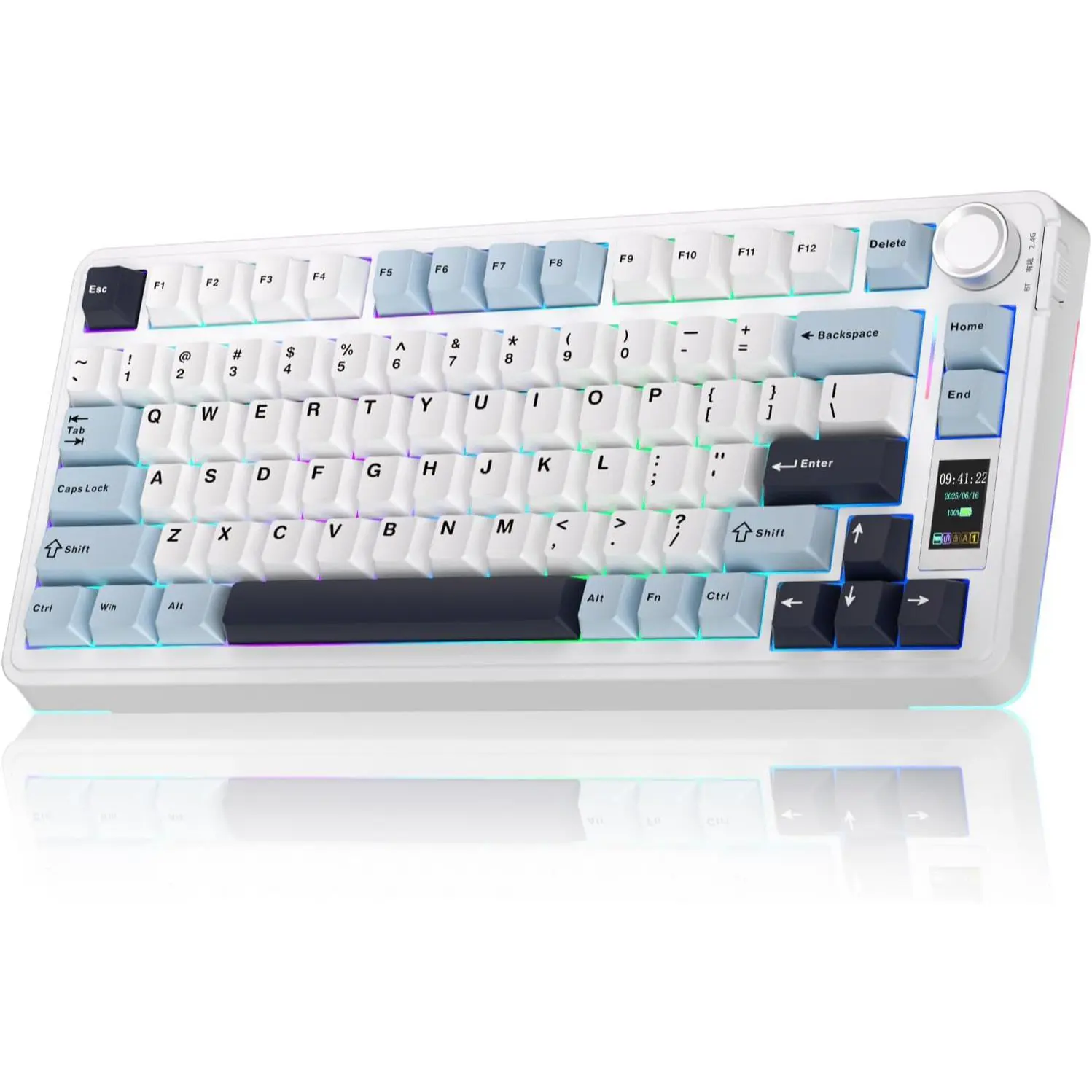Aula S75 PRO Wireless Mechanical Keyboard with Screen&Knob, 75% Hot Swappable Gaming Keyboard with Pre-Lubed Switches, RGB Backlit, PBT Keycaps Creamy Sounding PC Gaming Keyboards - White Blue