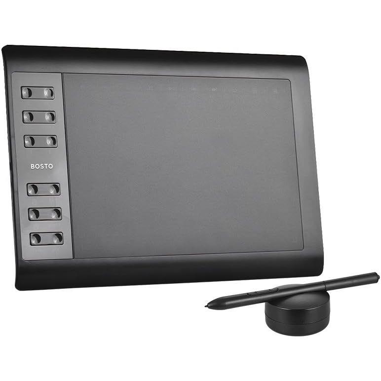 Bosto 1060 Plus Digital Graphic Drawing Painting Animation Tablet Pad 10x6" Working Area 8192 Level Pressure Sensitivity with Wireless Battery-Free Stylus for Drawing Design Online Course