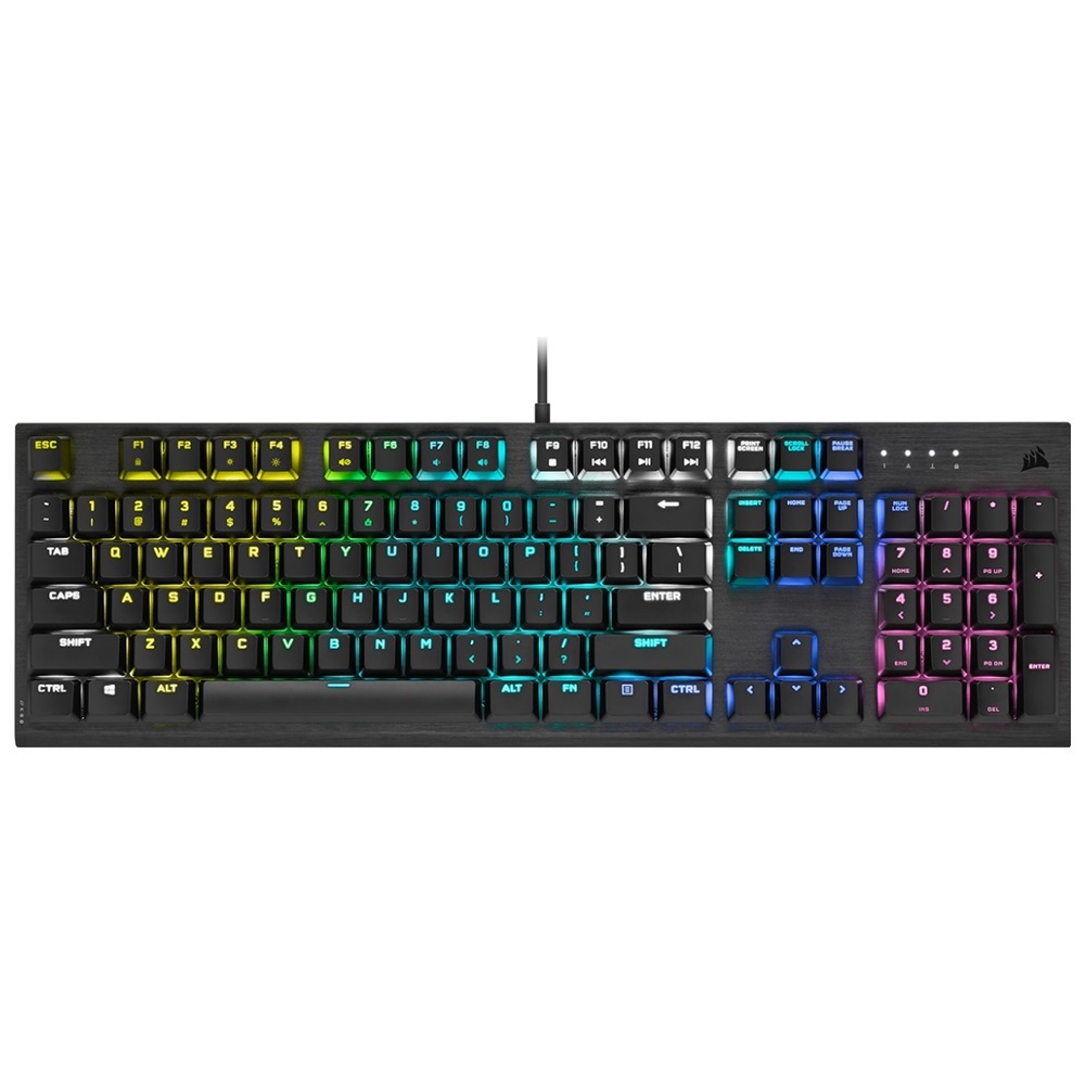 The CORSAIR K60 RGB PRO Mechanical Gaming Keyboard is built for both style and substance with a durable brushed aluminum frame and CHERRY MV mechanical keyswitches that let your vivid per-key RGB backlighting shine through. • Illuminate your desktop with vivid RGB backlighting. • Stand out from the masses with CHERRY Viola — their transparent design allows for greater diffusion of light, displaying the full radiance of CORSAIR iCUE RGB lighting. • Built with a brushed aluminum frame with black anodization for a stylish, modern look and years of battle-tested durability.