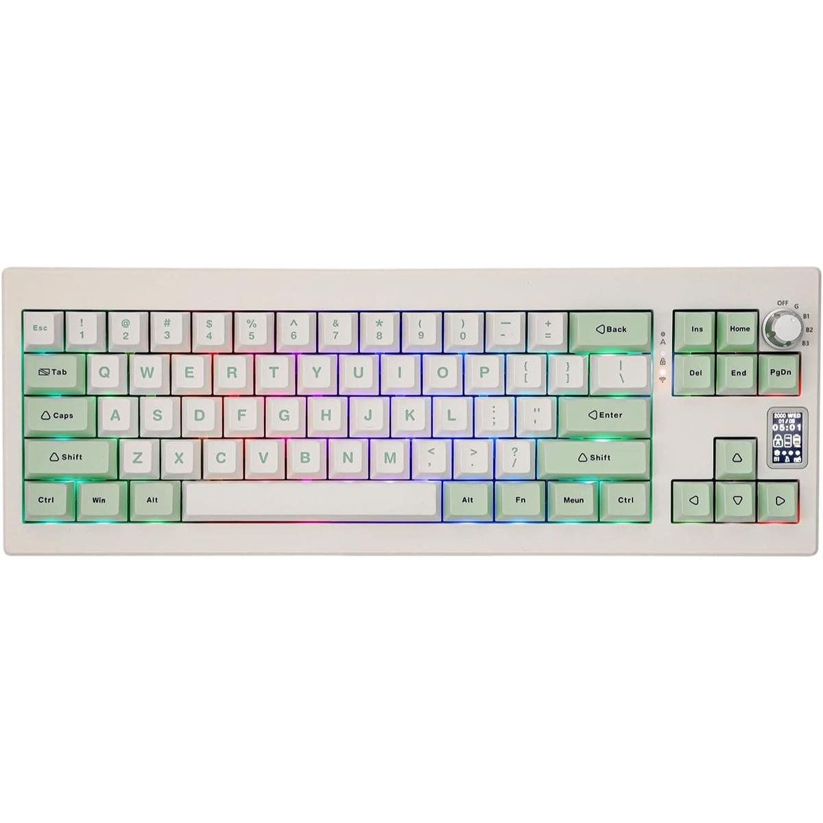 Epomaker Shadow-X Gasket Mechanical Keyboard with Screen, Hot Swappable 3 Modes (2.4GHz/Bluetooth/USB-C Wired) Wireless Gaming Keyboard, Poron Foam, Silicon Pad (White Green, Wisteria Linear Switch)