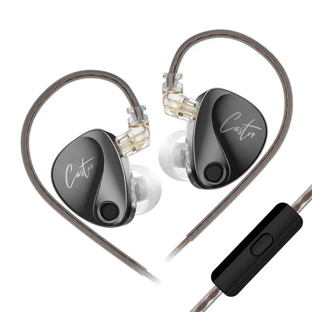 KZ Castor Wired IEM Earphone with Mic, 10mm Dual Magnetic + 8mm Dynamic Driver, Harman Target with Improved Bass in Ear Monitor, 4 Tuning Switches, 2Pin Detachable Cable