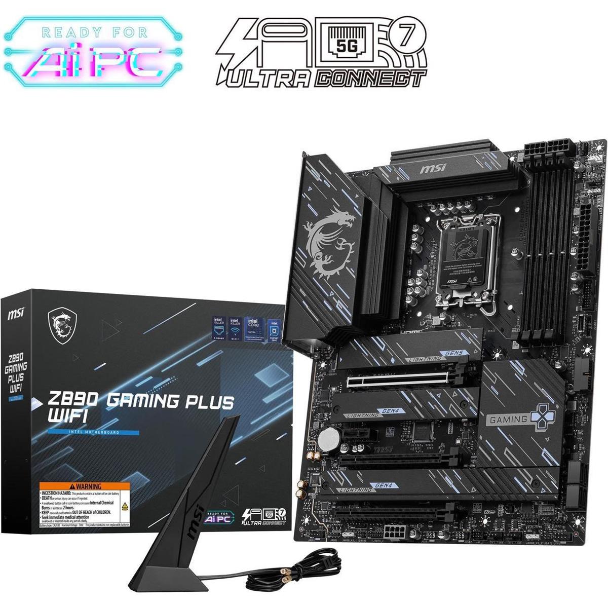 Z890 GAMING PLUS WIFI is designed with durable components to provide great gaming experience. Designed with Killer Wi-Fi 7 and 5G LAN, Thunderbolt 4, PCIe 5.0 solutions, Supplemental PCIe Power and exclusive EZ DIY features, it's ready for 24/7 non-stop gaming of Intel Core Ultra processors.