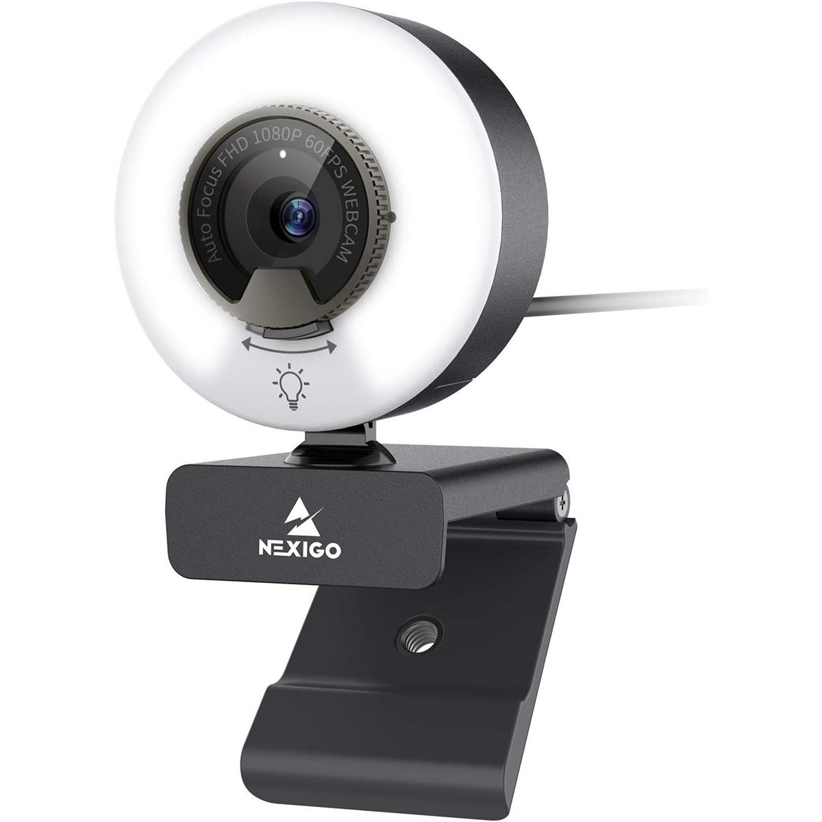 NexiGo N960E 1080P 60FPS Webcam with Light, Software Included, Fast AutoFocus, Built-in Privacy Cover, USB Web Camera, Dual Stereo Microphone, for Zoom Meeting Skype Teams Twitch (Without Box)