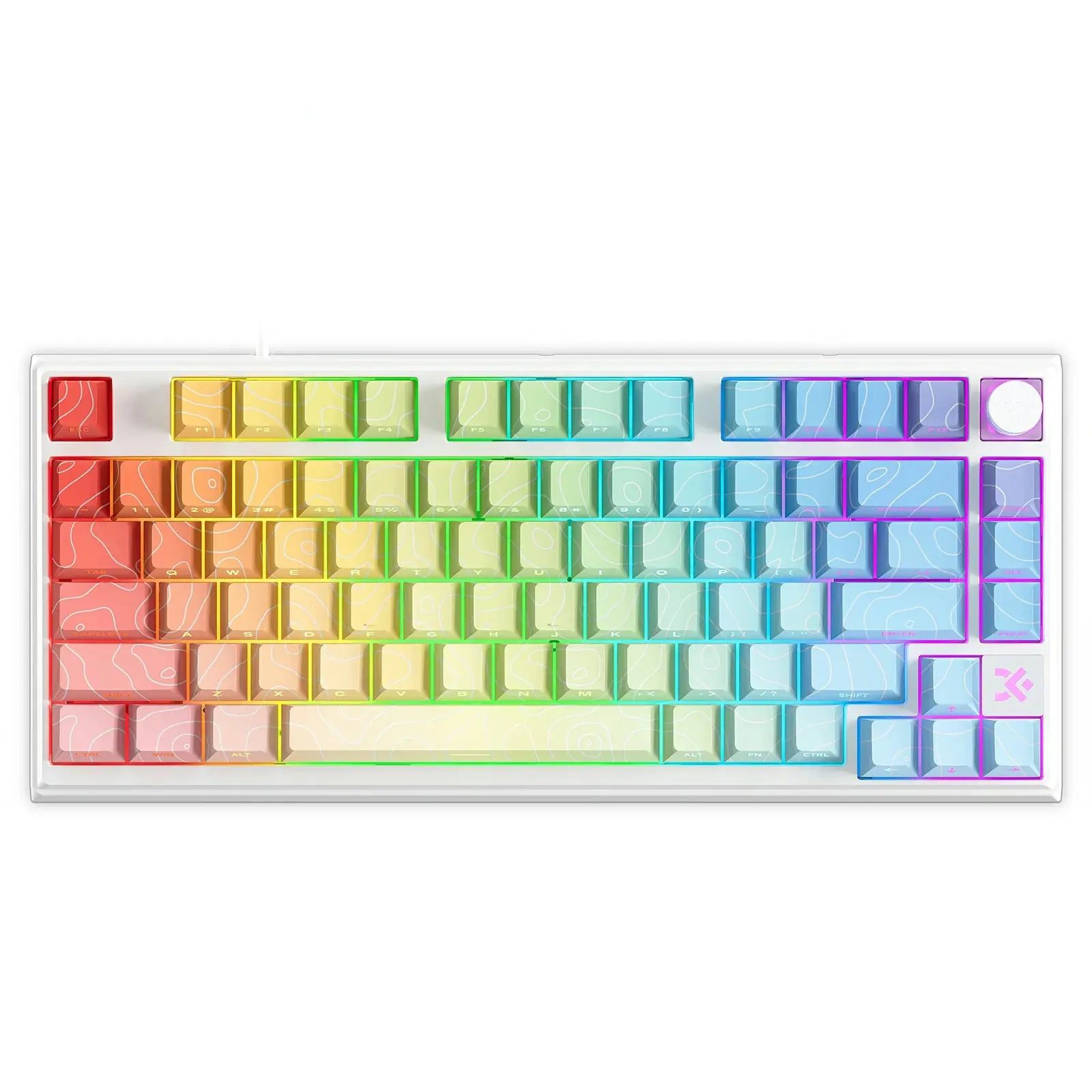 Skyloong GK75 HE 75% Gaming Keyboard USB Wired Magnetic Switch Mechanical Keyboard with Cherry Profile Double-Shot PBT Keycaps, South-Facing RGB Backlit and Knob, Skyloong Phantom Crystal White Switches (Contour Line Rainbow)