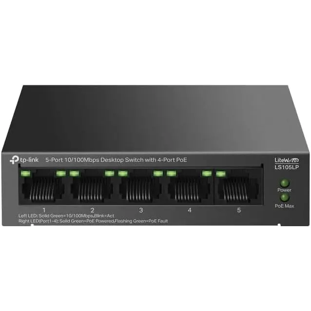 TP-Link LS105LP 5-Port 10/100Mbps Desktop Switch with 4-Port PoE