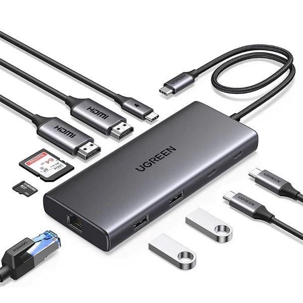 Ugreen USB-C 10-In-1 Docking Station with Dual HDMI 4K@60Hz, GLAN, 2x USB-C 3.2, 1x USB-A 3.2 + USB-A 3.0, SD/TF Slot And USB-C 100W Power Delivery - Metallic Grey Colour