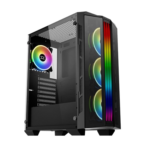 Xigmatek TRIPLE X, a new concept tempered glass PC case with three stripes RGB LED front panel, the case chassis designed for major ATX, M-ATX and Mini-ITX gaming or professional motherboard. Support 170mm CPU cooler clearance, PSU maximum length 165mm and VGA graphic card maximum length 320mm, support up to six 120mm fan or 240mm liquid cooling radiators at front, 240mm at top and 120mm at rear for excellent cooling performance, cable management friendly and beautiful lighting display.